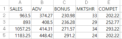 (독립변수로 adv bonus / 종속변수로 sales)