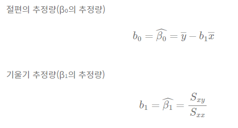 이전 단순회귀에서 최소제곱법을 이용해 추정량을 구한 값인