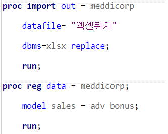 SAS코드를 다음과 같이 입력하면